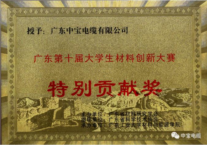 企業(yè)的發(fā)展離不開人才和創(chuàng)新,中寶電纜一直以來(lái)都非常支持創(chuàng)新人才的培養(yǎng),全面推動(dòng)大學(xué)生素質(zhì)教育工作進(jìn)程,大力支持科研教育事業(yè),積極履行企業(yè)的社會(huì)職責(zé),公司大力贊助廣東第十屆大學(xué)生材料創(chuàng)新大賽。